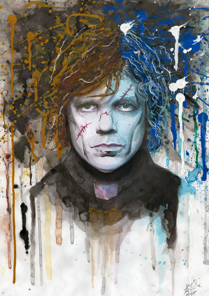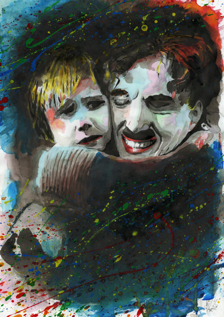 Here you will find various editions, including originals, artist proofs, limited, hand finished, and first editions of famous faces related to TV and film. Click on any work to see it in the store. Colour of a best friend Ink on paper 11.7 x 16.5 inches Clementine to Joel Ink on paper 11.7 x 16.5 inches Rebel in pink Ink on paper 11.7 x 16.5 inches Chaplin and the kid Ink on paper 11.7 x 16.5 inches Blood on the Empire Ink on paper 11.7 x 16.5 inches The First Ink on paper 11.7 x 16.5 inches Benji in Orange Ink on paper 11.7 x 16.5 inches You remind me of Jareth Ink on paper 11.7 x 16.5 inches Eggy Hugs Ink on paper 11.7 x 16.5 inches Death of a crow Ink on paper 11.7 x 16.5 inches Wolf in winter Ink on paper 11.7 x 16.5 inches Dragon in winter Ink on paper 11.7 x 16.5 inches Lion in winter Ink on paper 11.7 x 16.5 inches Colour of refusal Ink on paper 11.7 x 16.5 inches Other film and TV portraits Postcard from Brentwood Acrylic on canvas 101 x 81 cm (40 x 32 in) Mio Signore Mickey: Skid Row product Acrylic on canvas 101 x 81 cm (40 x 32 in) Mio Signore David: An underground fantasy Acrylic on canvas 101 x 81 cm (40 x 32 in) If you just... Acrylic on canvas 101 x 81 cm (40 x 32 in) Alice Stede and Edward Spock
