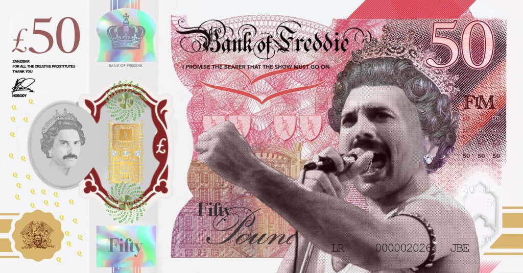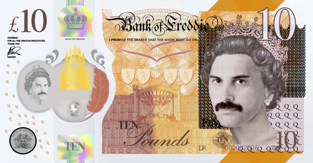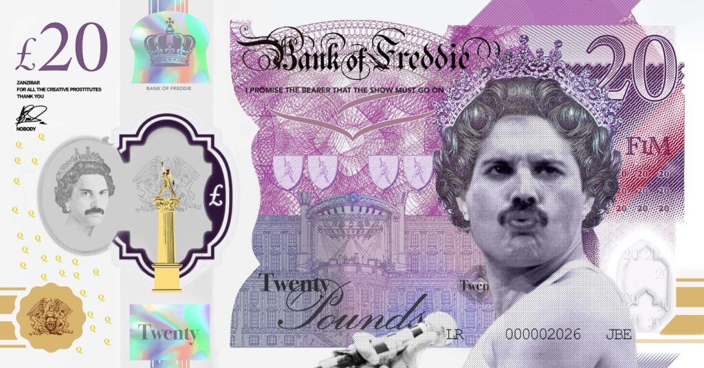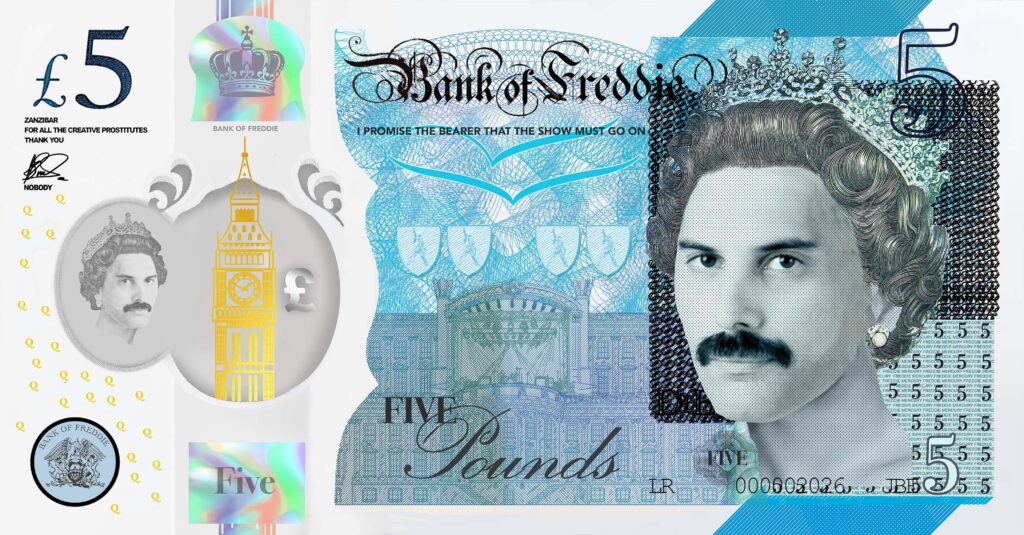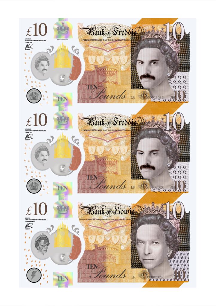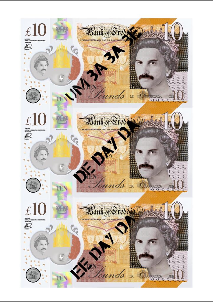 I want it all 24 x 31 inches 11.7 x 16.5 inches Freddies Bread 11.7 x 16.5 inches Fake money 11.7 x 16.5 inches Funny money 11.7 x 16.5 inches Freddies Reddies 11.7 x 16.5 inches Um Ba Ba Be 11.7 x 16.5 inches Money exchange 11.7 x 16.5 inches Negative equity 11.7 x 16.5 inches Work hard for the money 255 Freddie bucks 24 x 31 inches Bank of Freddie £5 Note Bank of Freddie £10 Note Bank of Freddie £20 Note Bank of Freddie £50 Note Bank of Bowie £5 Note Bank of Bowie £10 Note