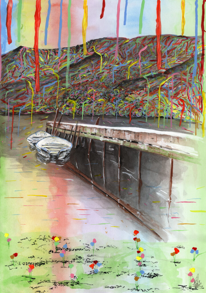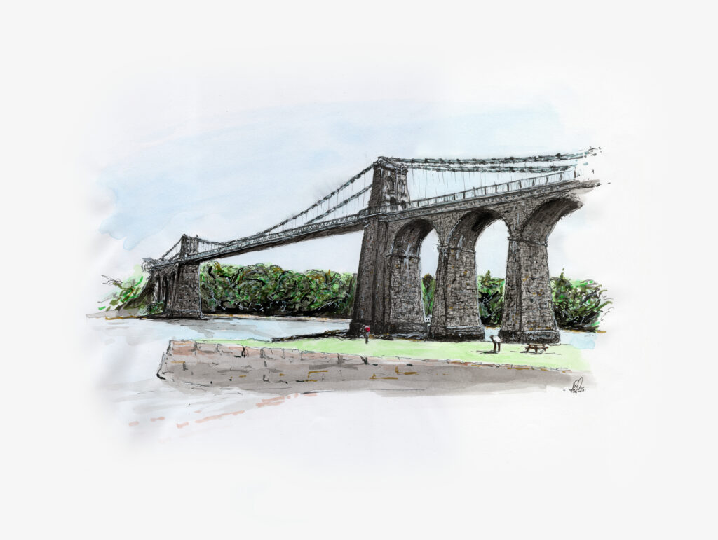 1: Doodle of Menai Bridge Ink on paper 11.7 x 16.5 inches