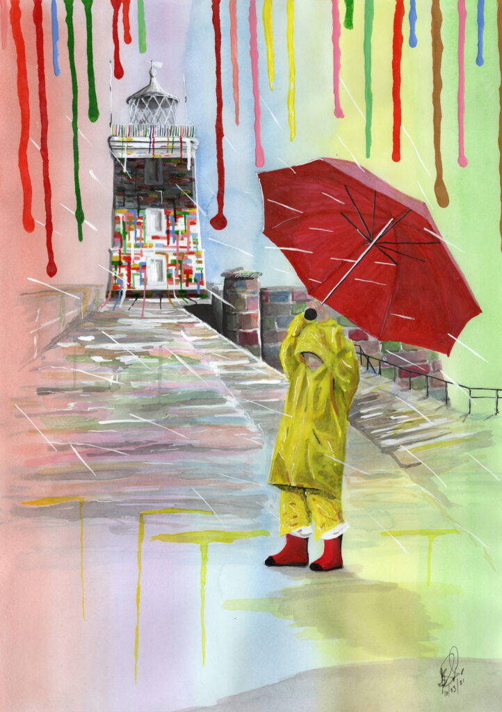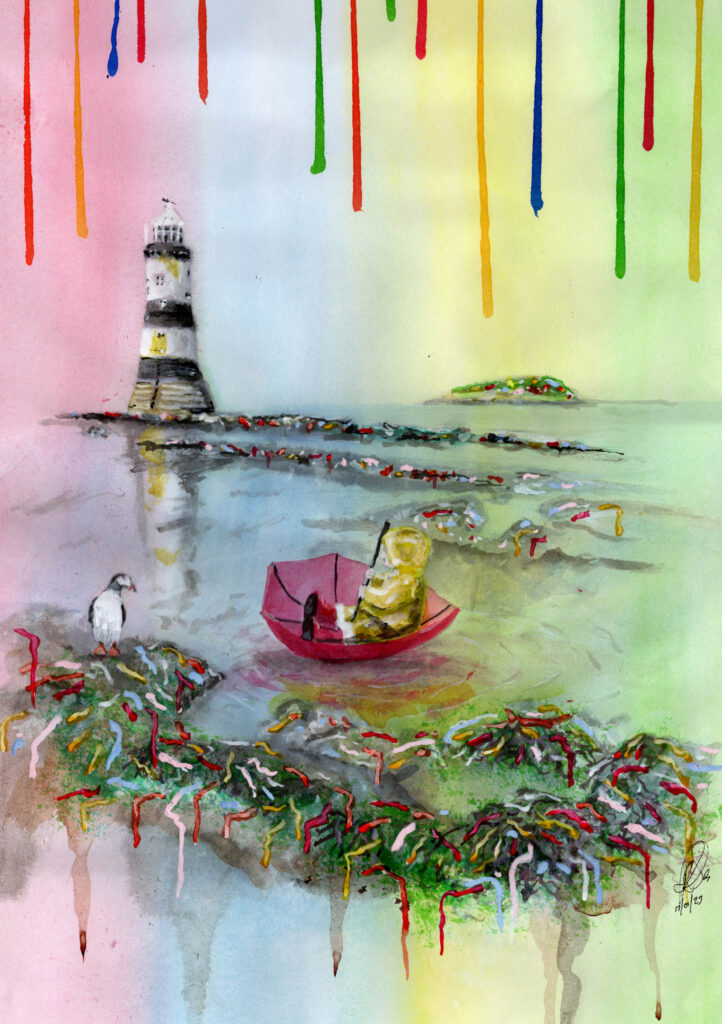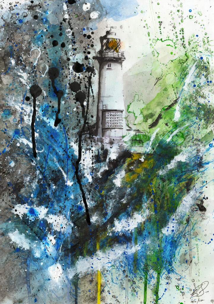 3: South Stack lighthouse from the sea Ink on paper 11.7 x 16.5 inches