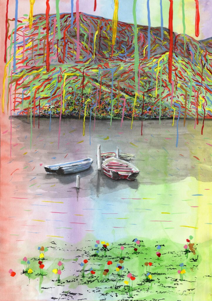 Acrylic and ink on canvas 11.7 x 16.5 inches